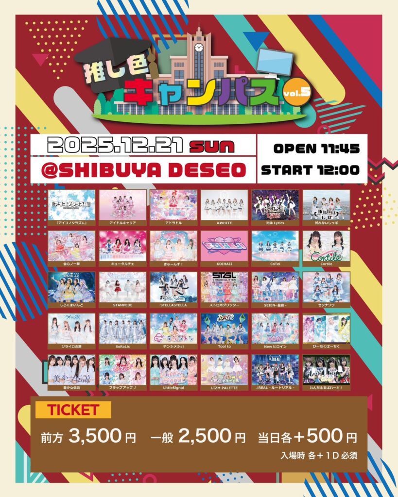 🎫前方3500円 / 一般2500円 / 当日各+500 (1D別)