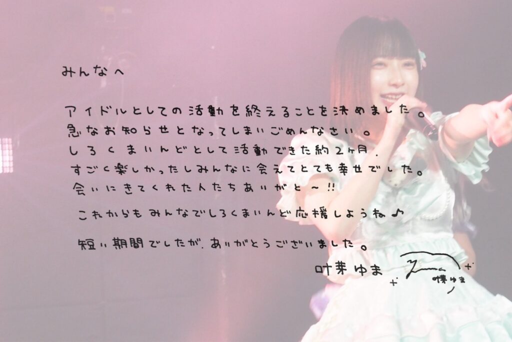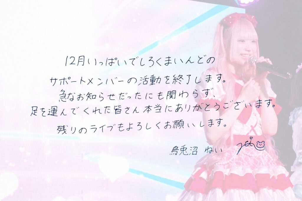2025年内でしろくまいんどサポートメンバーとしての活動を終了し、