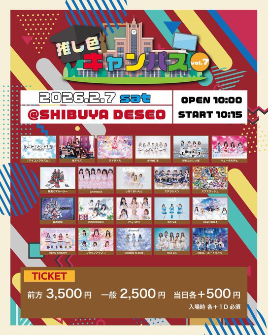 🎫前方3500円 / 一般2500円 / 当日各+500 (+1D)