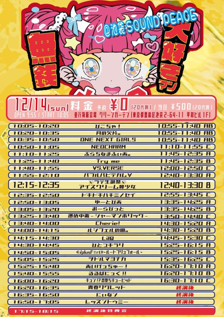 🎟️予約¥0/当日¥500(各2D代別)